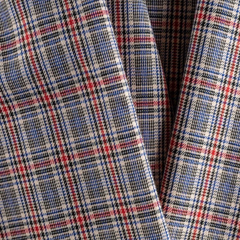 Сочетание линий черного, синего и красного цветов образует сложную многоцветную клетку.