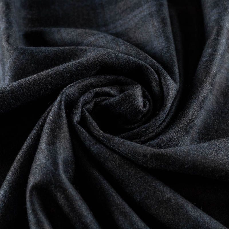 Стильная и элегантная костюмная ткань. Шерсть с бархатистой поверхностью, тонкая, очень приятная на ощупь, пластичная, мягкая, мягко драпируется в складки, немного держит форму. Стильная еле читаемая клетка светло-голубого цвета на фоне в приглушённо-серых оттенках. Идеально подойдет для пошива сарафанов, жакетов, жилетов, брючных и юбочных костюмов, кюлотов, брюк-палаццо.