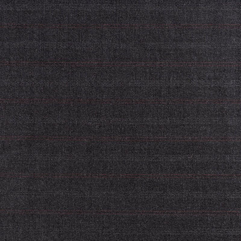 Костюмно-плательная шерстяная ткань средней плотности, немного суховата, приятная на ощупь. На темно-сером фоне очень тонкая жаккардовая полоска серого и бордового оттенка, направление - вдоль кромки. Прекрасно подойдет для пошива брюк-палацио, жакета, платья по фигуре, сарафана, классического мужского или женского костюма.