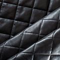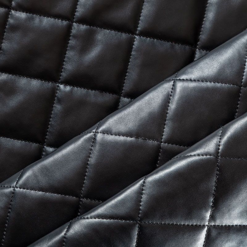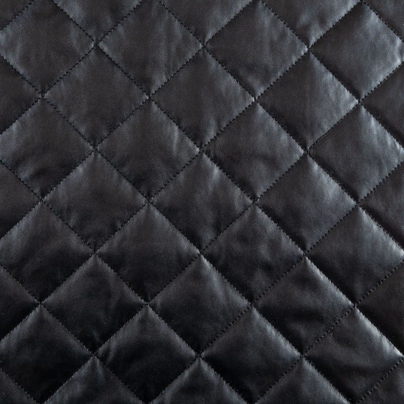 Двухслойная курточная стежка черного цвета, простеганная ромбами размером 5х5 см. Нижний слой - синтепон, верхний - мягкая матовая экокожа. Ткань легкая, пластичная, хорошо драпируется. Прекрасно подойдет для  пошива пальто, курток, жилетов, накидок-кейпов, объемных сумок, одежды для домашних питомцев, туристического снаряжения.