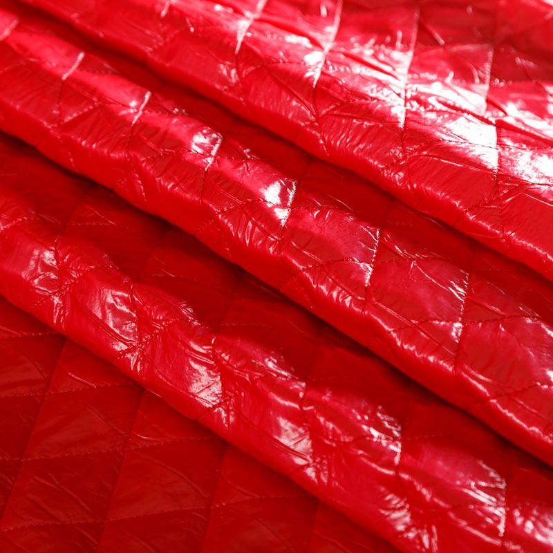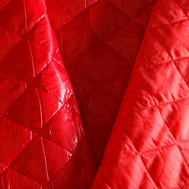 Двухслойная курточная ткань яркого оттенка, простеганная не крупными ромбами. Нижний слой - синтепон, верхний - матовый фактурный полиэстер. Очень мягкая и легкая, пластичная, хорошо драпируется. Прекрасно подойдет для  пошива легких пальто, бомберов, парки, курток, жилетов, накидок-кейпов, объемных сумок.