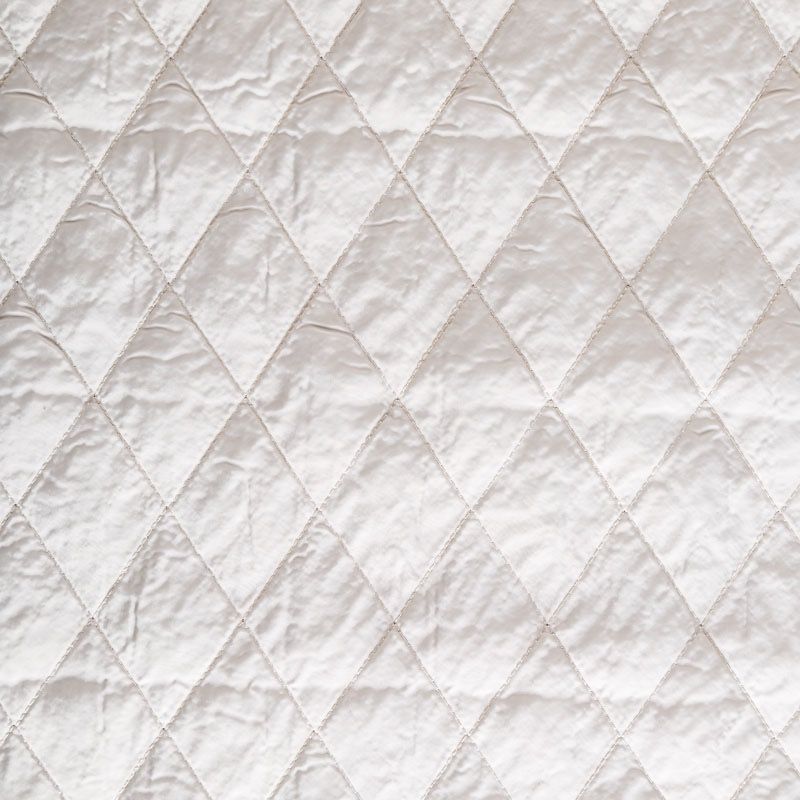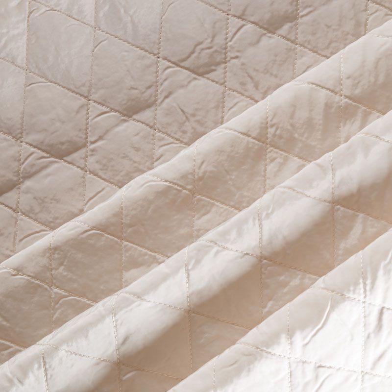 Двухслойная курточная ткань молочного оттенка, простеганная не крупными ромбами. Нижний слой - синтепон, верхний - матовый фактурный полиэстер. Очень мягкая и легкая, пластичная, хорошо драпируется. Прекрасно подойдет для  пошива легких пальто, бомберов, парки, курток, жилетов, накидок-кейпов, объемных сумок.