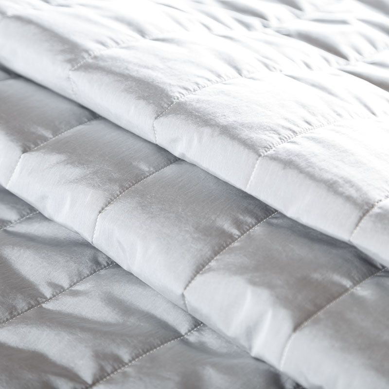 Итальяская двухслойная курточная ткань серебристо-серого оттенка, простеганная широкими полосами вдоль кромки. Нижний слой - воздушный синтепоновый утеплитель, верхний - матовая, слегка жатая плотная плащевая ткань. Очень мягкая и легкая, пластичная, хорошо драпируется. Прекрасно подойдет для  пошива легких пальто, бомберов, парки, курток, жилетов, накидок-кейпов, объемных сумок.