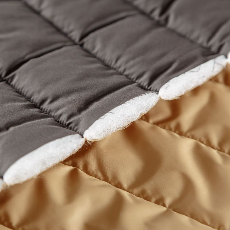 Итальяская трехслойная двухсторонняя курточная ткань, простеганная широкими полосами вдоль кромки. Средний слой - воздушный синтепоновый утеплитель, нижний и верхний - матовая плотная плащевая ткань разных оттенков. Очень мягкая и легкая, пластичная, хорошо драпируется. Прекрасно подойдет для пошива легких пальто, бомберов, парки, курток, жилетов, накидок-кейпов, объемных сумок.