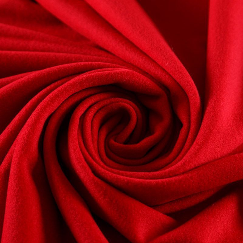 Пальтовая итальянская шерсть в красивом красном оттенке. Ткань плотная, достаточно теплая, комфортная для одежды на сезон осень-зима. Полотно имеет короткий ворс. Мягкое и нежное на ощупь, не толстое и не тяжелое, хорошо держит форму. Прекрасно подойдет для пошива женских пальто, теплых костюмов, кейпов, мягких бомберов, жилетов и головных уборов.