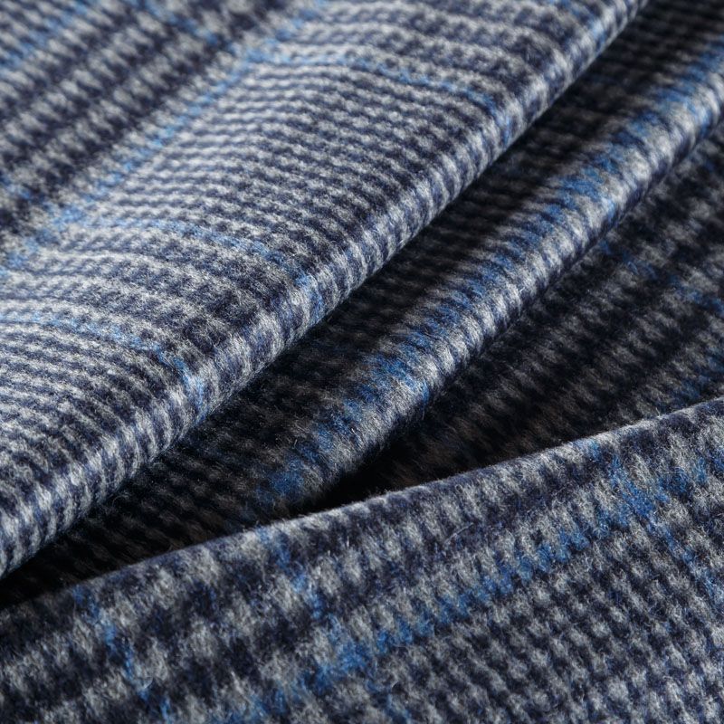 Итальянский плотный пальтовый кашемир темно-серого оттенка. Сочетание линий черного и синего цвета образуют эффектую клетку. Ткань великолепно держит форму, имеет мягкий направленный ворс, поверхность мягкая, шелковистая и приятная на ощупь. Идеально подойдет для пальто прямого кроя, кокона, бомбера, куртки, жилета.