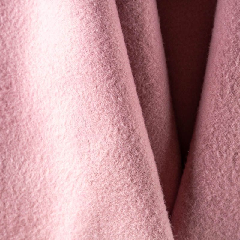 Плотная пальтовая ткань с коротеньким мягким ворсом на лицевой стороне и ровная на изнаночной. Она легко раскраивается, не скользит и не осыпается на срезах. Прекрасно подойдет для пошива женских пальто, теплых костюмов, кейпов, мягких бомберов, жилетов и головных уборов.