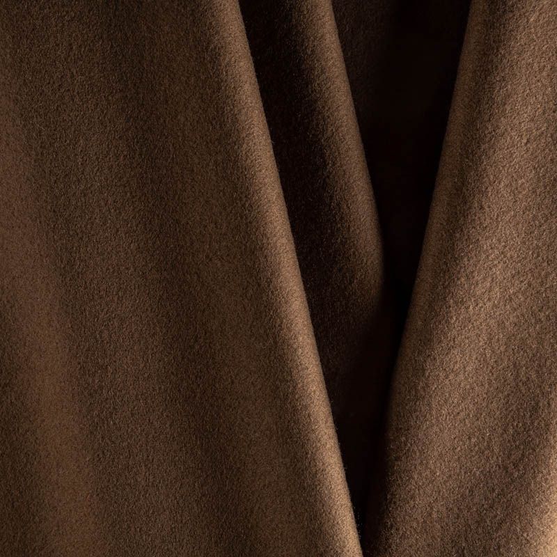 Пальтовая итальянская шерсть в коричневом оттенке. Ткань плотная, достаточно теплая, комфортная для одежды на сезон осень-зима. Полотно имеет короткий ворс. Мягкое и нежное на ощупь, не толстое и не тяжелое, хорошо держит форму. Прекрасно подойдет для пошива женских пальто, теплых костюмов, кейпов, мягких бомберов, жилетов и головных уборов.
