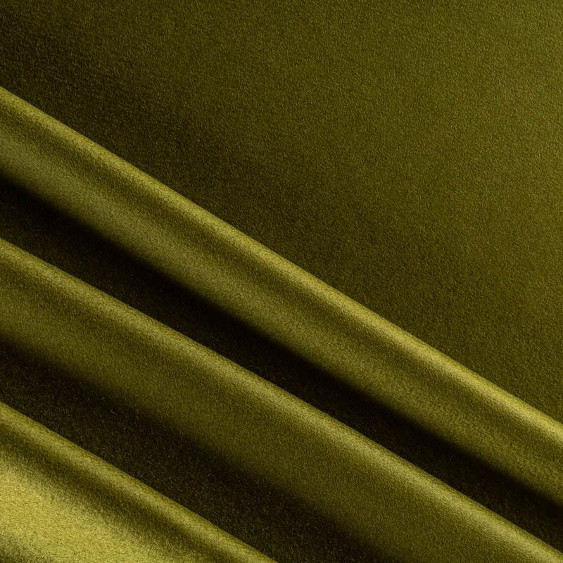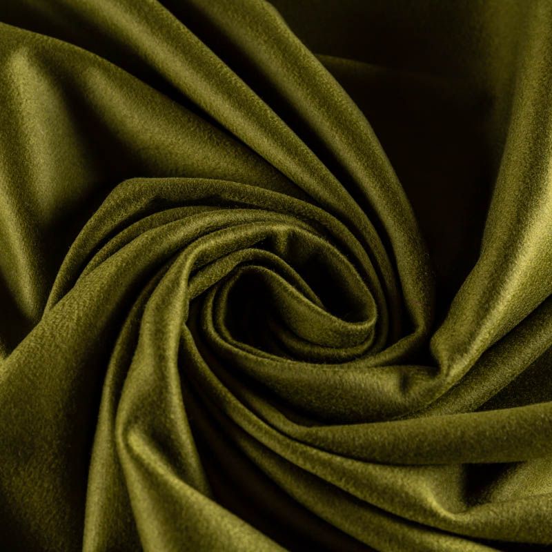 Пальтовая итальянская шерсть с кашемиром в зеленом оттенке. Ткань плотная, достаточно теплая, комфортная для одежды на сезон осень-зима. Полотно имеет короткий ворс. Мягкое и нежное на ощупь, не толстое и не тяжелое, хорошо держит форму. Прекрасно подойдет для пошива женских пальто, теплых костюмов, кейпов, мягких бомберов, жилетов и головных уборов.