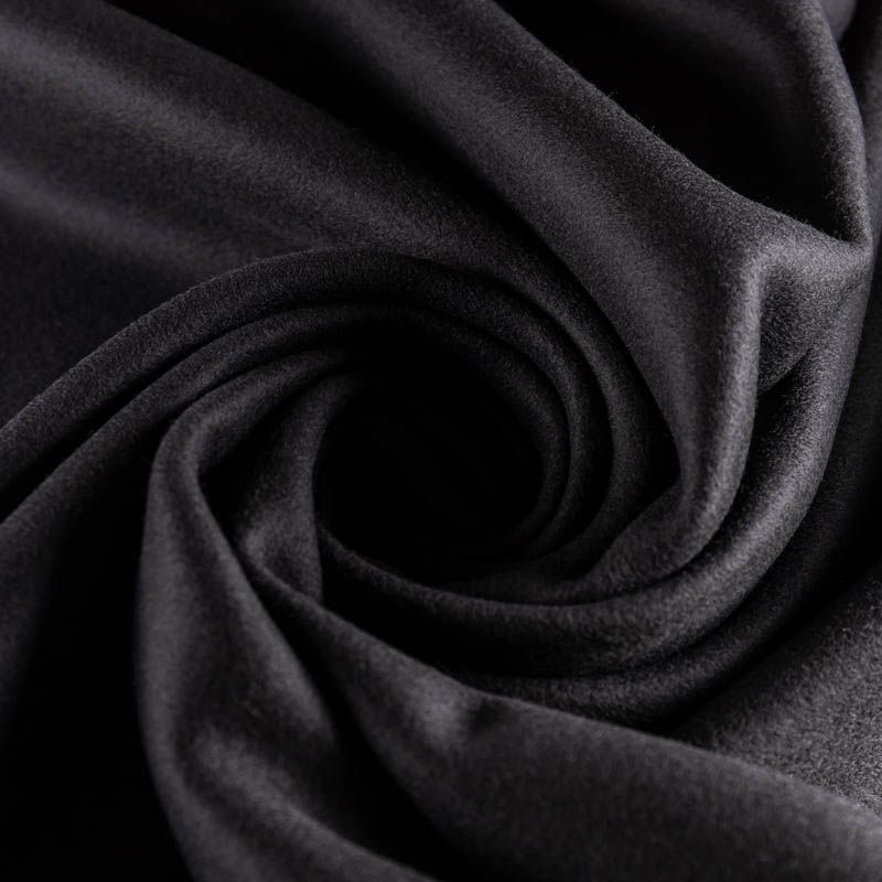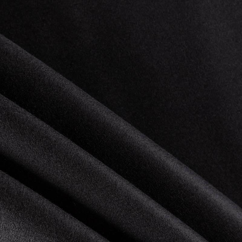 Пальтовая итальянская шерсть в классическом черном цвете. Ткань плотная, достаточно теплая, комфортная для одежды на сезон осень-зима. Полотно имеет короткий ворс. Мягкое и нежное на ощупь, не толстое и не тяжелое, хорошр держит форму. Прекрасно подойдет для пошива женских пальто, теплых костюмов, кейпов, мягких бомберов, жилетов и головных уборов.