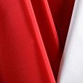 Плотная прочная плащевая ткань красного цвета с полиуретановым белым покрытием с изнаночной стороны. Поверхность ткани матовая, ровная и гладкая. Подходит для изготовления плащей, курток, ветровок, бомберов, одежды для домашних питомцев, туристического снаряжения.