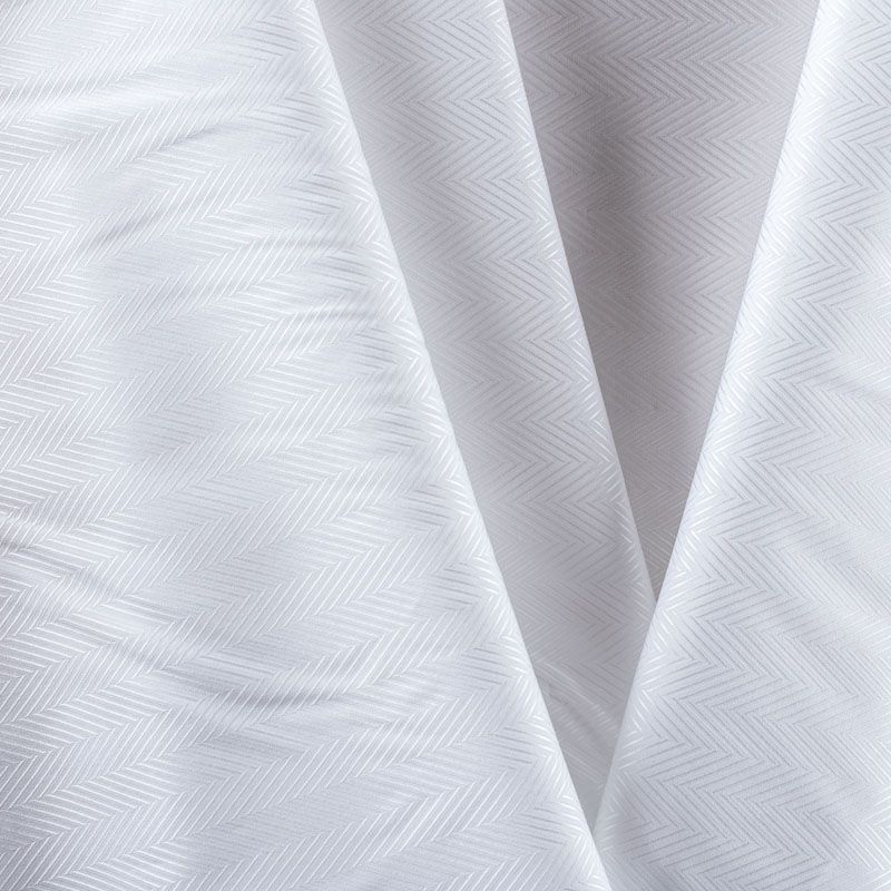 Белоснежная итальянская плательно-сорочечная вискоза с жаккардовой твидовой "елочкой". Ткань мягкая, тонкая, лёгкая, непрозрачная, пластичная и приятная к телу, хорошо драпируется, имеет фактурную поверхность, сатиновый блеск. Прекрасно подойдет как для пошива предметов мужского гардероба, так и для блуз, платья-рубашки, сарафана, туники, топа, летнего костюма.