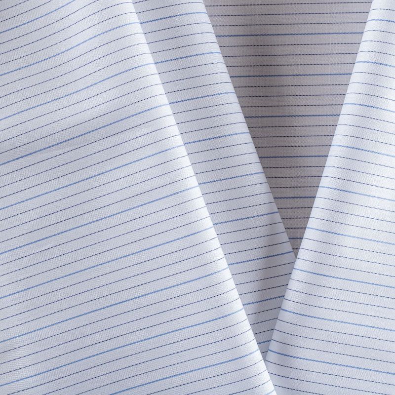 Итальянский плательно-рубашечный хлопок в тонкую полоску в синих оттенках. Ткань мягкая, лёгкая, непрозрачная, пластичная и приятная к телу, хорошо драпируется, имеет гладкую матовую поверхность и сатиновое плетение. Прекрасно подойдет как для пошива платья-рубашки, сарафана, платьев различных фасонов, туники, топа, летнего костюма, комбинезона, мужской и детской одежды.
