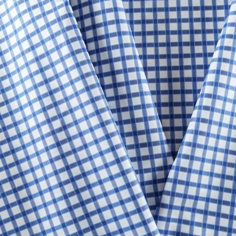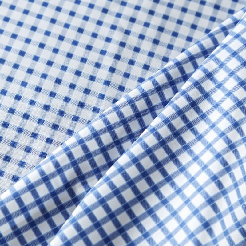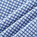 Итальянский плательно-рубашечный смесовый хлопок в синюю клеточку. Ткань мягкая, лёгкая, непрозрачная, пластичная и приятная к телу, хорошо драпируется, имеет гладкую матовую поверхность и сатиновое плетение. Прекрасно подойдет как для пошива платья-рубашки, сарафана, платьев различных фасонов, туники, топа, летнего костюма, комбинезона, детской и мужской одежды.