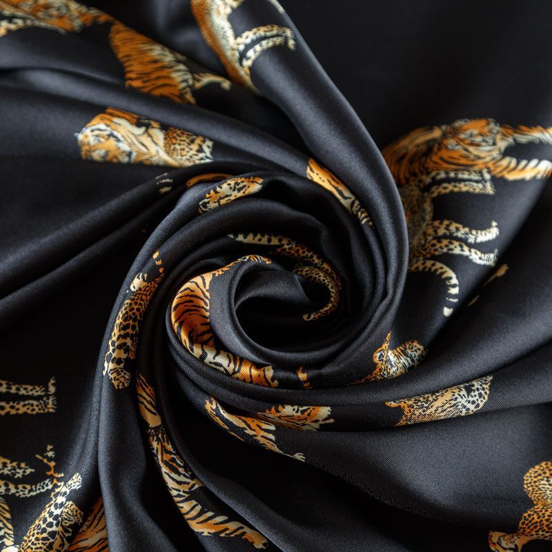 Итальянская плательно-рубашечная ткань с сатиновым блеском и анималистическим принтом. Ткань мягкая, лёгкая, непрозрачная, пластичная и приятная к телу, хорошо драпируется, имеет гладкую матовую поверхность и сатиновое плетение. Прекрасно подойдет как для пошива платья-рубашки, сарафана, платьев различных фасонов, туники, топа, летнего костюма, комбинезона.