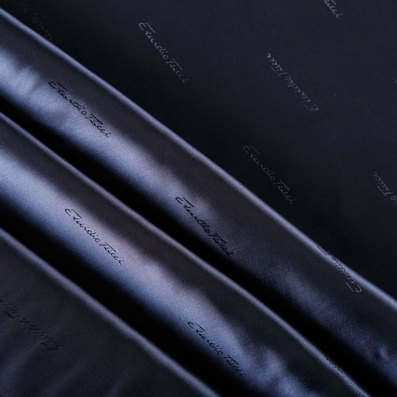 Итальянская подкладочная ткань из вискозы черного оттенка с редким жаккардовым узором и красивым лоском. Полотно средней плотности, легкое, не просвечивает, хорошо скользит, не тянется. Подойдет для изготовления таких изделий, как пальто, костюмы, куртка, шуба, платье, жакет.