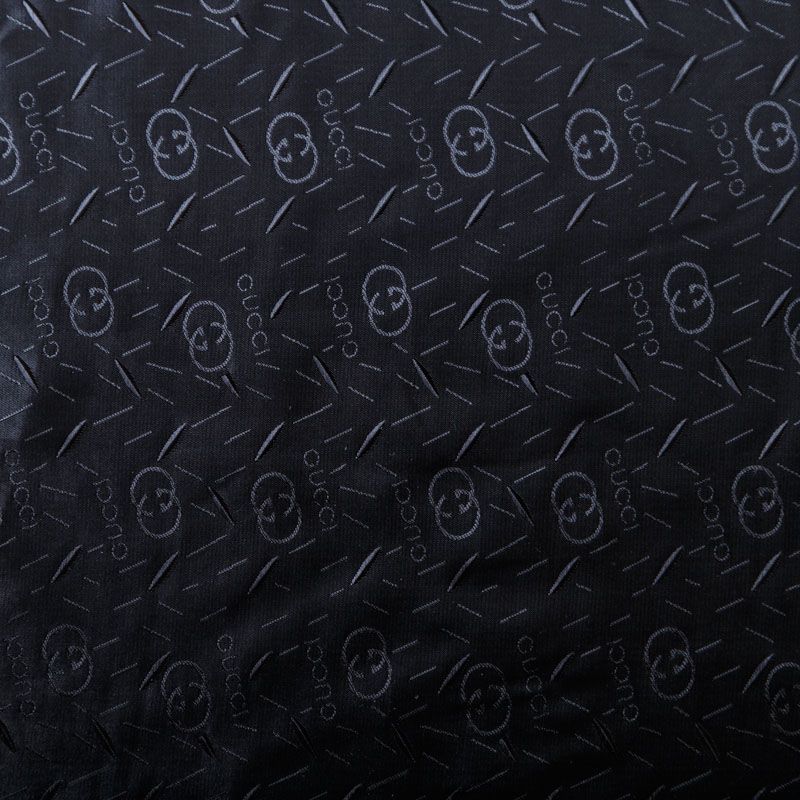 Смесовая подкладочная ткань черного оттенка с жаккардовым узором и красивым лоском. Полотно средней плотности, легкое, не просвечивает, хорошо скользит, не тянется. Подойдет для изготовления таких изделий, как пальто, костюмы, куртка, шуба, платье, жакет.
