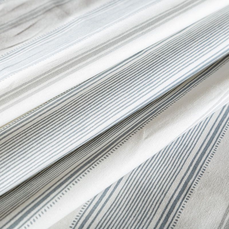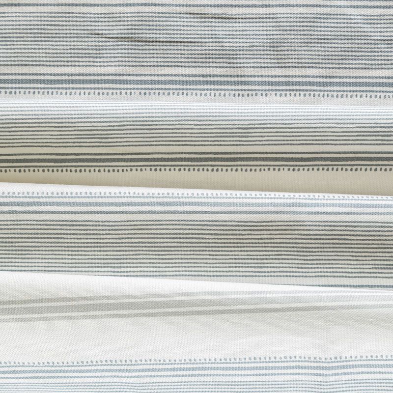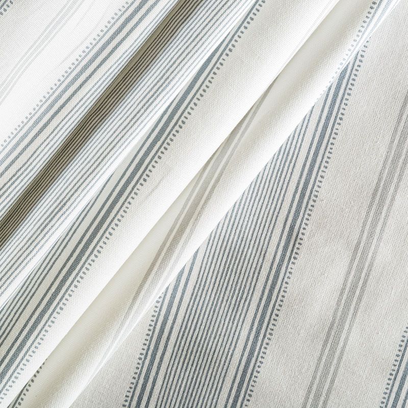 Матовая фактурная портьерная ткань в тонкую полоску, которая расположена вдоль кромки. Представлена в бело-серой палитре. Ткань средней плотности, без блеска, хорошо драпируется, имеет полонтяное переплетение. Прекрасно впишется в самые разные стилевые направления (прованс, кантри). Можно использовать для пошива портьер, римской шторы, салфеток, столового белья, подушек, покрывал и других предметов текстильного интерьера.
