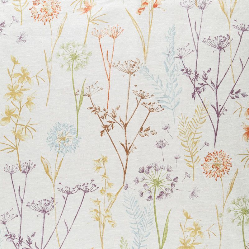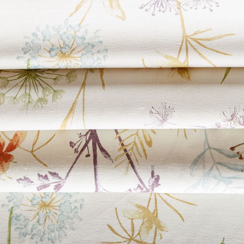 Натуральная хлопковая портьерная ткань с принтом полевых растений в пастельных нежных оттенках. Ткань средней плотности, без блеска, хорошо драпируется, имеет полонтяное переплетение. Прекрасно подойдет для оформления детской, кухни, столовой или дачного интерьера. Можно использовать для пошива портьер, римской шторы, салфеток, столового белья, подушек, покрывал и других предсетов текстильного интерьера.