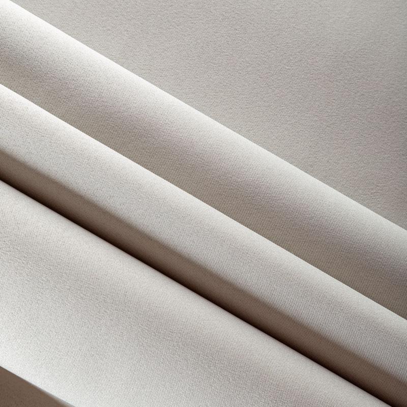 Двухстороняя плотная ткань. Обе стороны гладкие, имеют сатиновый легкий глянец. Ткань хорошо драпируется, укладываясь в крупные ниспадающие пластичные складки и позволяет использовать любые виды крепления для штор – люверсы, ленту, кольца. Блокирует от 30 до 70 % проникновение света в помещении, не склонна к выгоранию и деформации. Удачно впишется в такие интерьеры, как эко, лофт, модерн в качестве портьер и других элементов текстильного оформления.