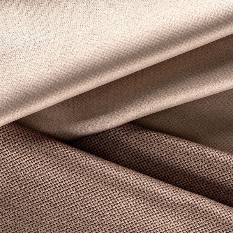 Двухстороняя плотная ткань.Одна сторона - матовая с плетением рогожка,а другая с сатиновым легким глянцем. Хорошо драпируется, укладываясь в крупные ниспадающие пластичные складки и позволяет использовать любые виды крепления для штор – люверсы, ленту, кольца.  Блокирует до 50 % проникновение света в помещении, не склонна к выгоранию и деформации. Удачно впишется в такие интерьеры, как эко, лофт, модерн в качестве портьер и других элементов текстильного оформления.