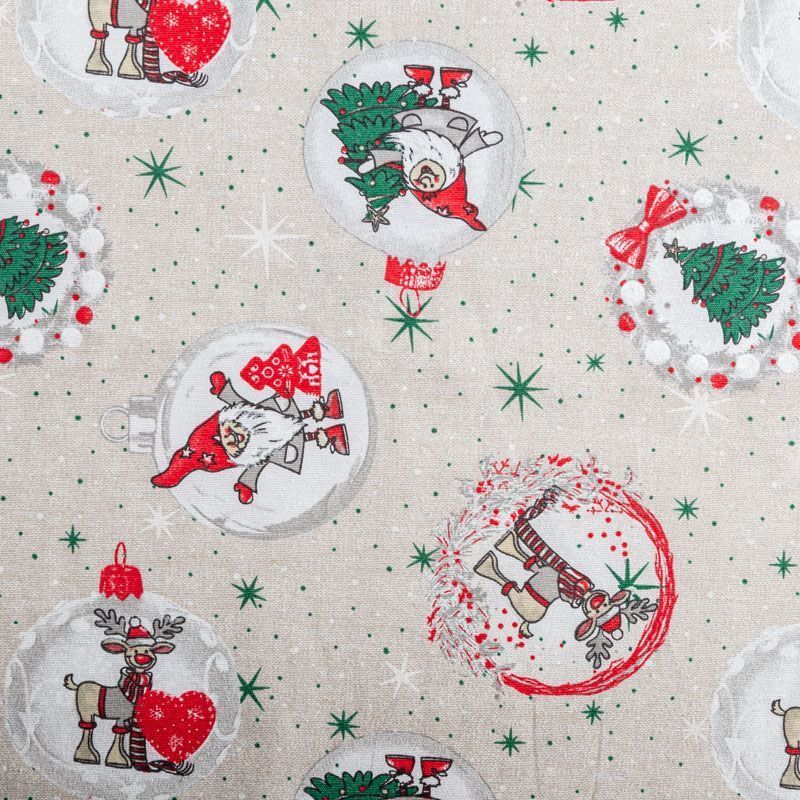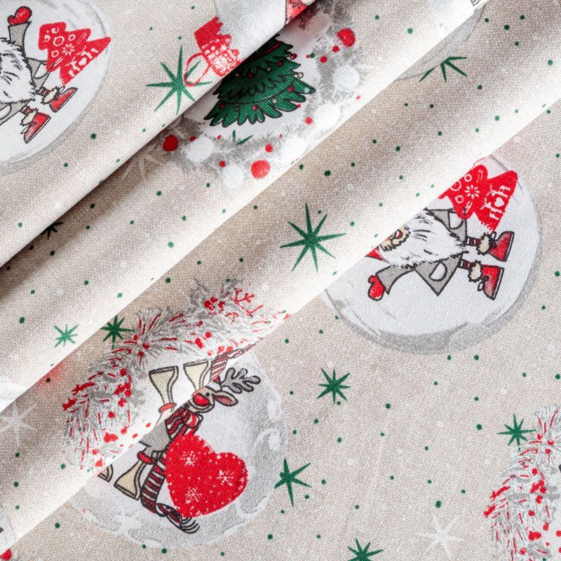 Декоративный смесовый хлопок со стилизованным рождественским принтом от испанского производителя Visatex. Ткань средней плотности, приятная и гладкая на ощупь. Интересный вариант для пошива штор, декоративных подушек и покрывал, изготовления текстильных элементов в кухнях-столовых, гостинных, спальнях и даже детских.