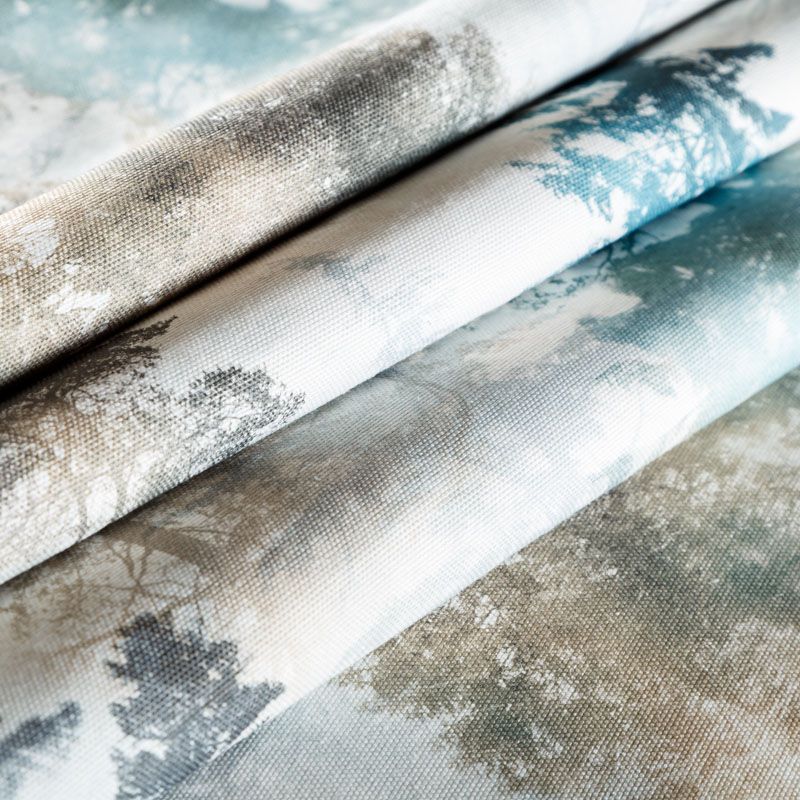 Декоративный смесовый хлопок с оригинальным принтом в серо-голубых оттенках от испанского производителя Canete. Ткань плотная, с полотняным переплетением и матовой поверхностью. Интересный вариант для пошива штор, декоративных подушек и покрывал, изготовления текстильных элементов в кухнях-столовых, гостинных, спальнях и даже детских.