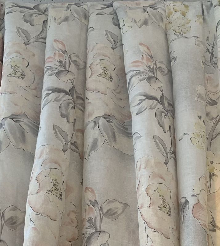 Итальянская портьерная льняная ткань в натуральных оттенках с крупным флористическим принтом в пастельным тонах. Неповторимая природная фактура льна и оптимальная длина ткани позволит использовать их в любой комнате дома - гостиной, столовой, спальне, кухне - как самостоятельный элемент декора, так и в сочетании с тюлем.