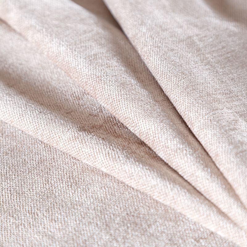 Плотная портьерно-обивочная ткань с бархатистой фактурой имеет очень элегантный внешний вид, красиво переливается на  солнце.  Благодаря переплетению обычного и пушистого волокна и добавлению синтетики, ткань не растягивается и не мнется, не образует катышков, не выгорает под солнцем. Нейтральные цвета коллекции прекрасно подойдут для обивки мебели, пошива добротных штор, подушек, покрывала.