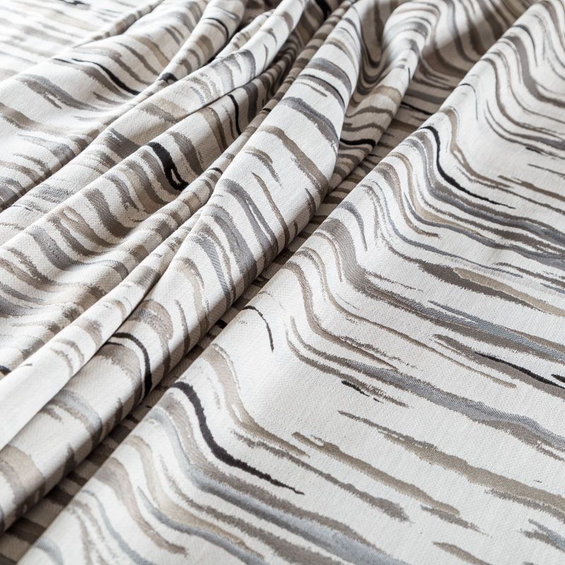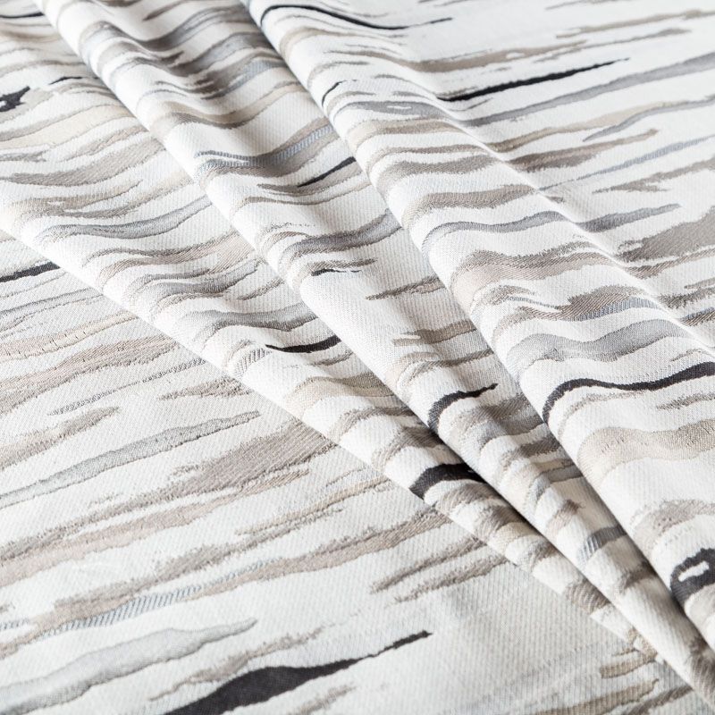 Стильная жаккардовая ткань светло-серого цвета с абстрактным рисунком из коллекции Эльтам известного бренда Fryett's. Ткань средней плотности, имеет фактурную матовую поверхность, прекрасно держит форму, хорошо драпируется. Ткани этой коллекции прекрасно впишутся в традиционный и современный интерьер в качестве римской или классической шторы, подушек, обивки мебели.