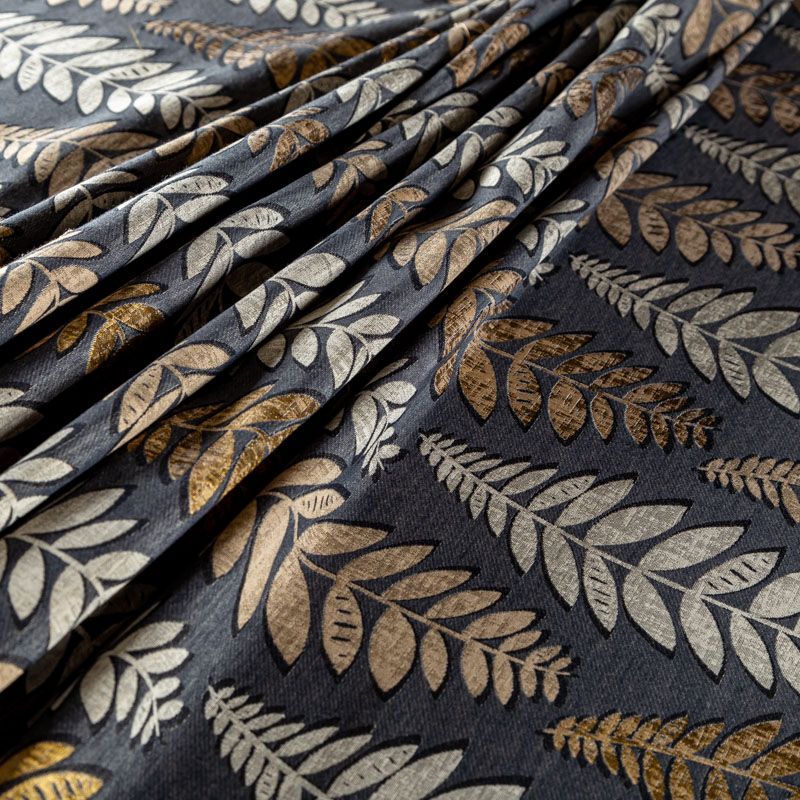 Стильная жаккардовая ткань темно-серого цвета с растительным дизайном из коллекции Анкона известного бренда Fryett's. Ткань высокой плотности, имеет матовую фактурную поверхность, прекрасно держит форму. Ткани этой коллекции прекрасно впишутся в традиционный и современный интерьер в качестве римской или классической шторы, подушек, обивки мебели.