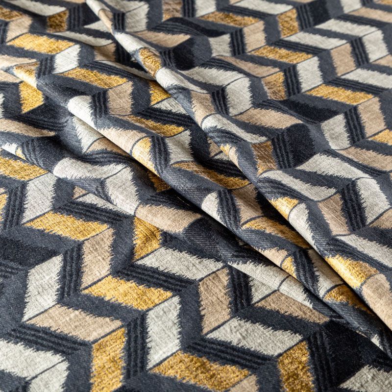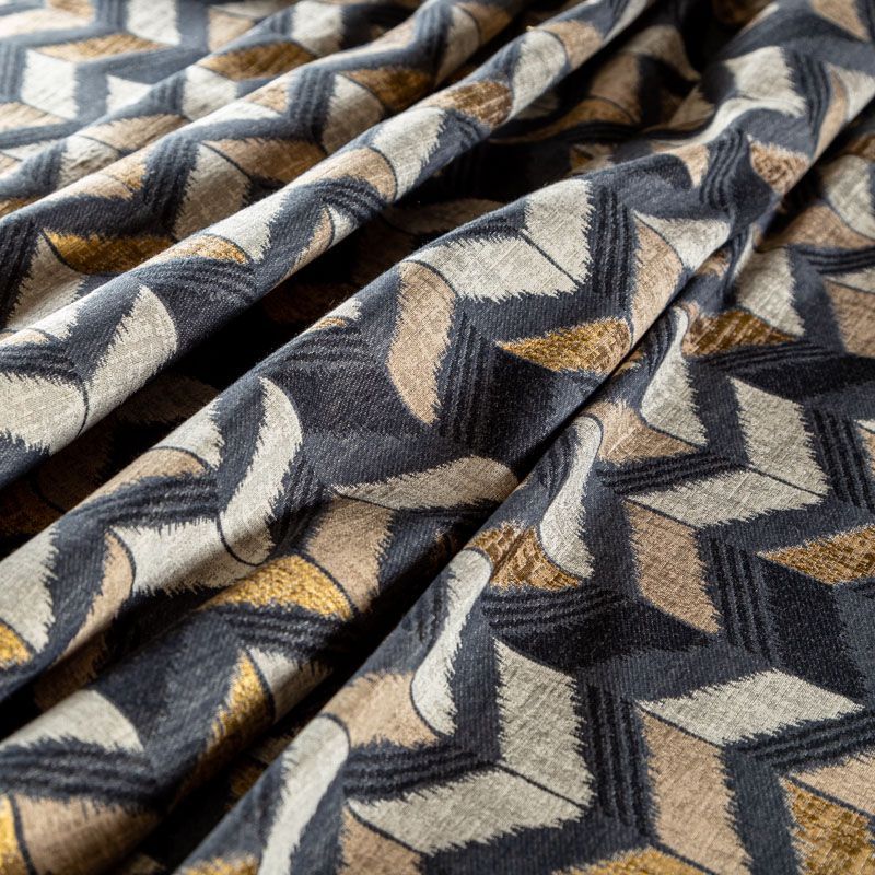 Стильная жаккардовая ткань темно-серого цвета с геометрическим узором "зиг-заг" из коллекции Зена известного бренда Fryett's. Ткань высокой плотности, имеет матовую фактурную поверхность, прекрасно держит форму. Ткани этой коллекции прекрасно впишутся в традиционный и современный интерьер в качестве римской или классической шторы, подушек, обивки мебели.