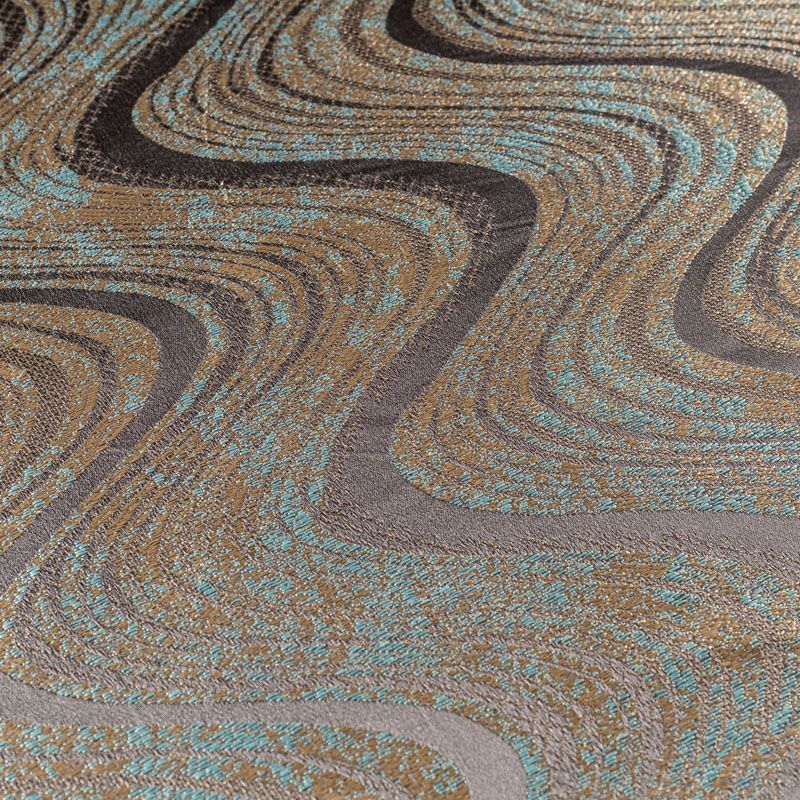 Интересная жаккардовая ткань с абстрактным рисунком в виде горизонтальных "волн" прекрасно подойдет для стильного современного интерьера. Ткань средней плотности, мягкая, хорошо драпируетсяи держит форму. Подойдет в качестве штор для гостиной, спальни, также можно использовать для пошива покрывала, декоративных чехлов, подушек, римской шторы.