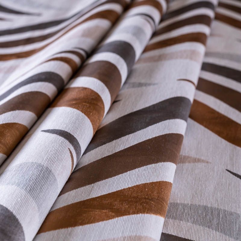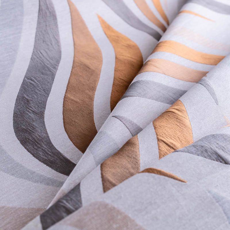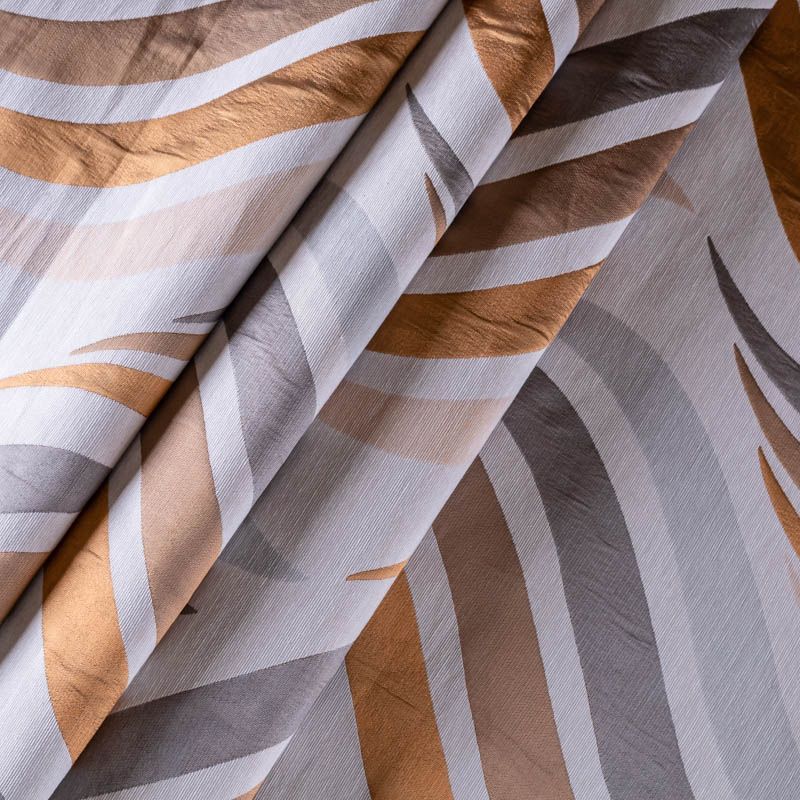 Итальянская жаккардовая фактурная портьерная ткань в благородной коричнево-золотистой цветовой гамме с геометрическим рисунком. Вискоза с хлопком создают тяжелые складки при драпировке. Подходит для пошива штор, ламбрекенов, покрывал, наволочек, чехлов на мебель и других элементов декора.