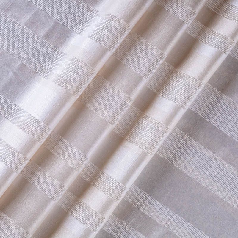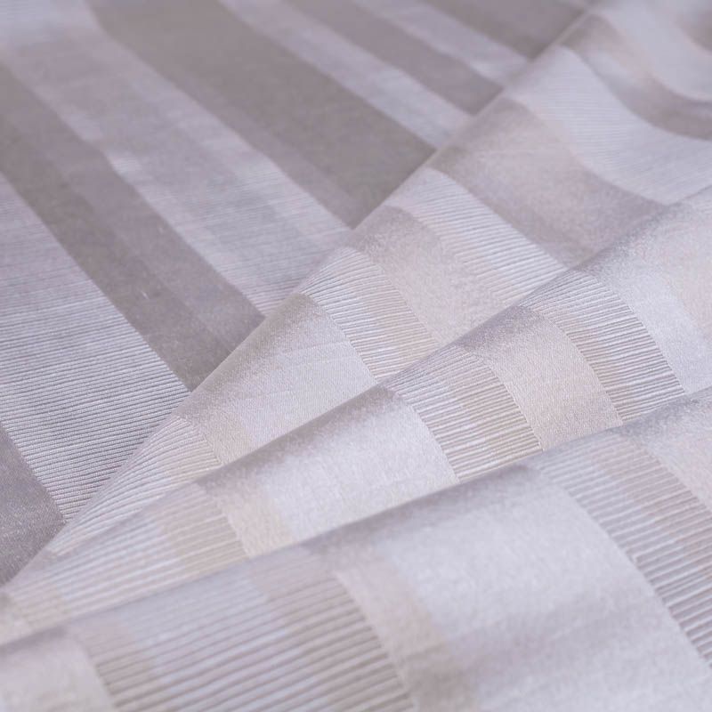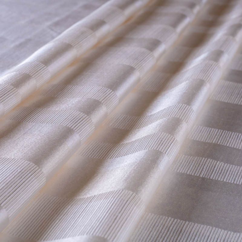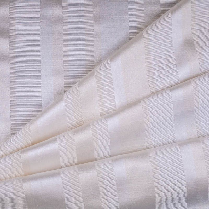Сдержанный английский жаккардовый рисунок в виде чередующихся матовых и глянцевых полос в благородном сливочном цвете. С помощью этой ткани можно создать роскошный интерьер в классическом английском или колониальном стиле. Шторы украсят спальню или гостиную. Сшитая из нее римская штора будет уместна в ванной комнате и кухне-столовой. Подходит для изготовления покрывал на кровать, ламбрекенов, наволочек, чехлов, а также легкой обивки мебели. Оптимальный смесовый состав ткани позволит пользоваться текстильным изделием долгие годы.