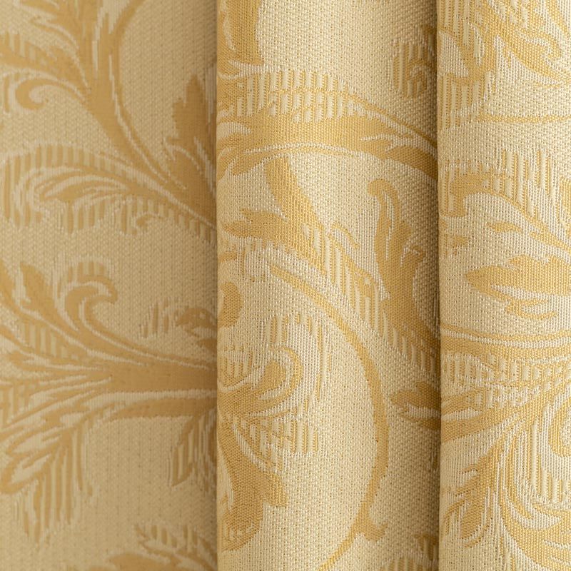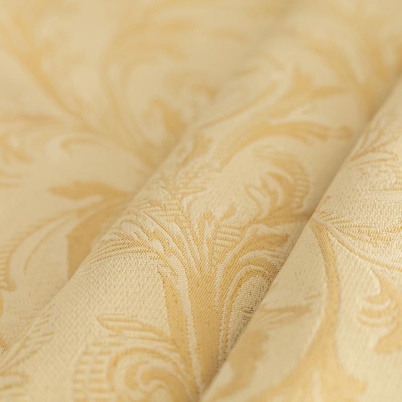 Жаккардовый рисунок идеален для оформления интерьера в классическом стиле. Ткань применима для изготовления столового белья, пошива штор, декоративных чехлов, подушек, скатертей и салфеток. Плотная жаккардовая ткань с богатым растительным узором натурального песочного и молочного цвета.