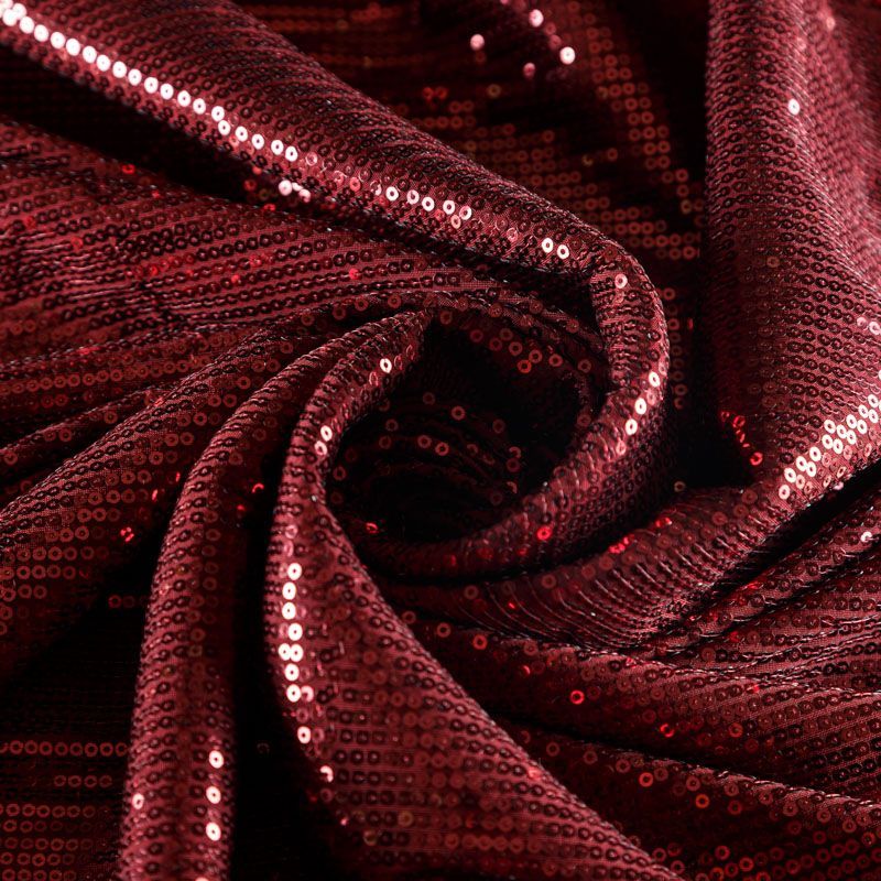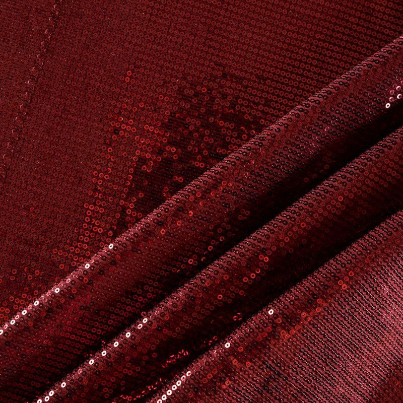 Блестящие пайетки благородного багрового оттенка. Мелкие, размером около 3 мм. Основа - трикотажное полотно, комфортное в носке. Ткань не прозрачная, тянется. Подойдет для вечернего коктельного платья или юбки, комбинезона, топа, танцевальных и сценических костюмов.