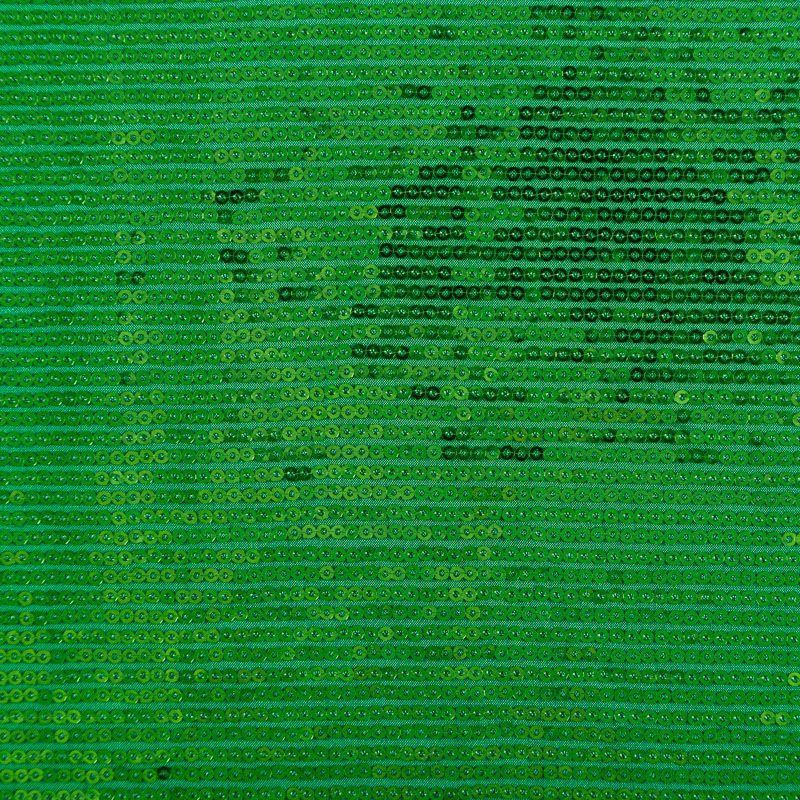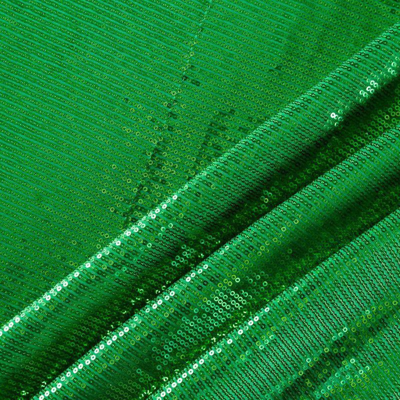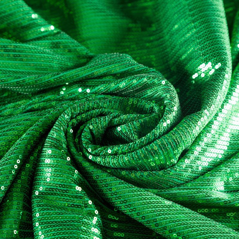 Блестящие пайетки сочного зеленого оттенка. Мелкие, размером около 3 мм. Основа - трикотажное полотно, комфортное в носке. Ткань не прозрачная, тянется. Подойдет для вечернего коктельного платья или юбки, комбинезона, топа, танцевальных и сценических костюмов.
