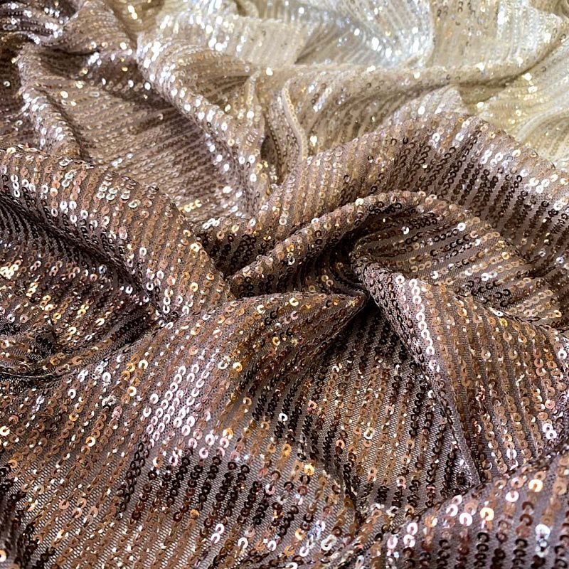 Невероятные пайетки на тонкой сетке с роскошным мерцанием мелких блесток с переходом цвета. Ткань очень хорошо драпируется, красиво переливается, имеет глянцевый блеск, пластичная и эластичная и в длину, и в ширину. Градиент расположен в направлении от кромки к кромке. Набирается объемом. Это может быть нарядное платье, Пайетки — идеальный материал для праздников и вечеринок. Из них получится эффектное платье, жакет, боди, туника, юбка или комбинезон.