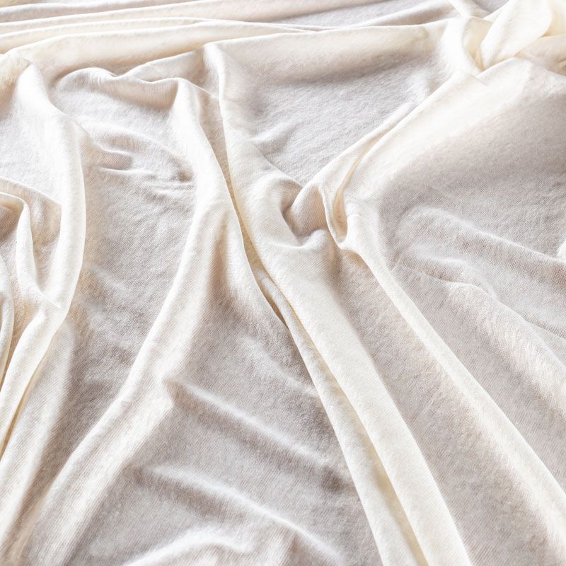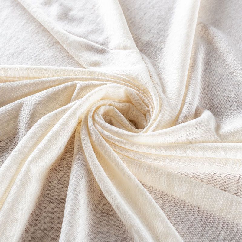 Тонкое, пластичное, мягкое, немного прозрачное на свет итальяское трикотажное полотно из вискозы с фактурной поверхностью "под лен".  Прекрасно подойдет для создания туник, футболок, платьев, лонгслива, тонкого свитера, водолазки.