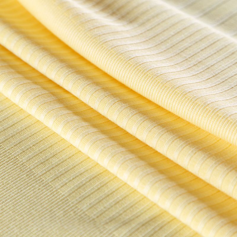 Трикотаж средней плотности, с высокой степенью эластичности, поверхность рельефная за счет эффекта резинки. С изнанки трикотаж гладкий, комфортный, подходит для использования без подклада. Сшить из такого полотна можно топы, лонгсливы, водолазки, платья,  юбки, брючные комплекты. Направление полос - вдоль линии кромки.
