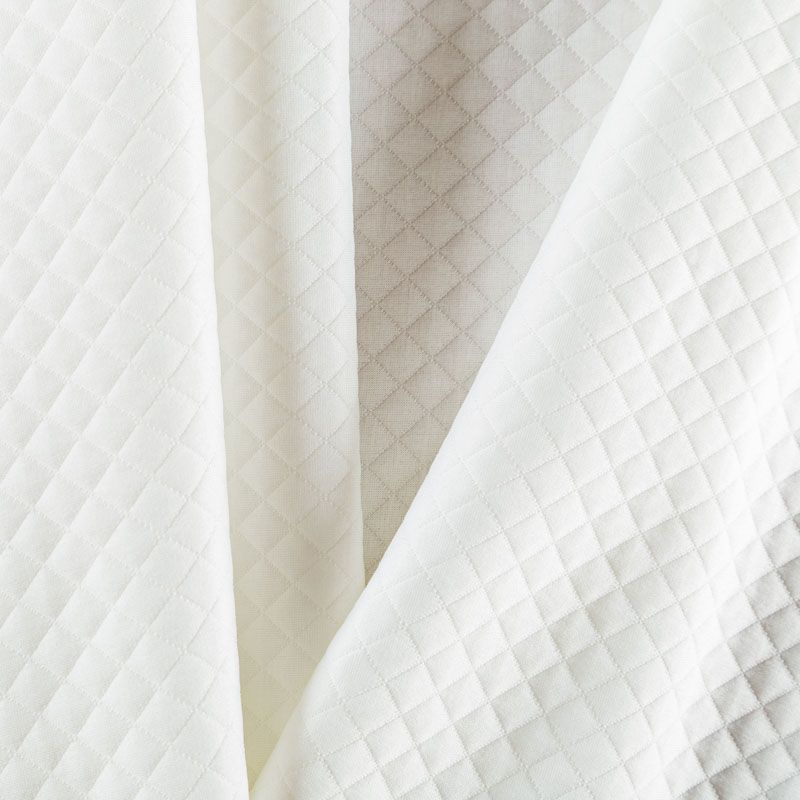 Плотное трикотажное полотно с имитацией стежки. Поверхность ткани объемная, мягкая, приятная на ощупь. Трикотаж не просвечивается, хорошо тянется за счет эластана в составе, держит форму. Прекрасно подойдет для пошива легких пальто, курток, бомберов, кардиганов, платьев, юбок, шорт.