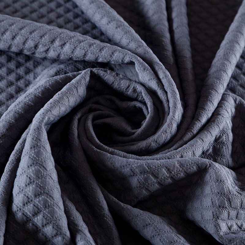 Плотное трикотажное полотно с имитацией стежки. Поверхность ткани объемная, мягкая, приятная на ощупь. Трикотаж не просвечивается, хорошо тянется за счет эластана в составе, держит форму. Прекрасно подойдет для пошива легких пальто, курток, бомберов, кардиганов, платьев, юбок, шорт.