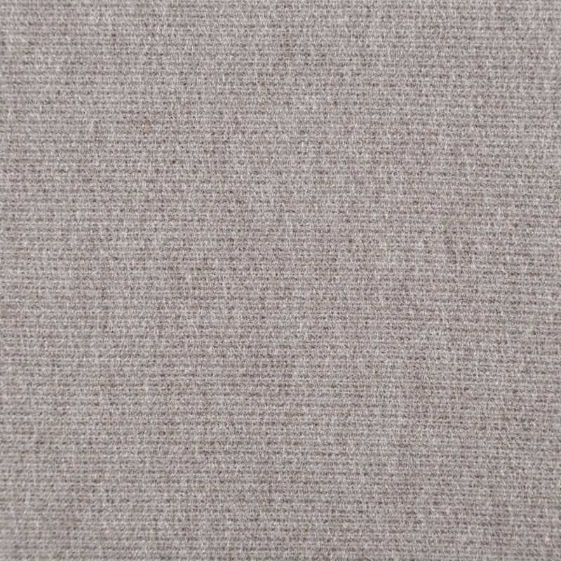 Вязаный трикотаж холодного бежевого оттенка средней плотности, упругий и прочный, держит форму, при этом хорошо тянется в поперечном направлении. Отлично подойдет для пошива легкой верхней одежды, жакета, кардигана, брючного костюма, юбки или платья.