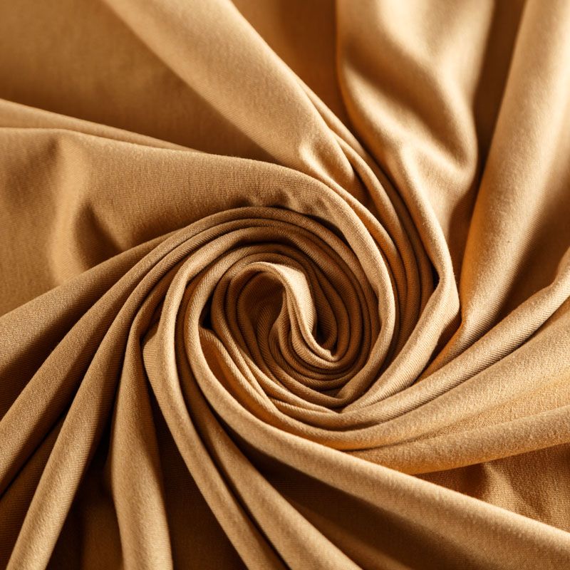 Смесовое трикотажное полотно с гладкой однородной поверхностью, которое особенно эффектно смотрится в драпировке. Материал средней плотности, не просвечивает, приятный к телу и комфортный в носке. Подойдет для пошива топов, футболок, бадлонов, лонгслива, кардигана, спортивного платья, джоггеров, шорт.