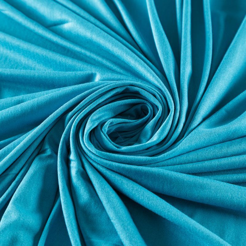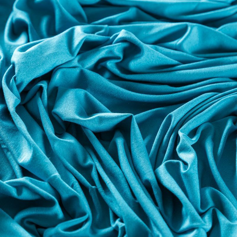 Итальянский вискозный трикотаж бирюзового оттенка с гладкой поверхностью, который особенно эффектно смотрится в драпировке. Материал средней плотности, не просвечивает, приятный к телу и комфортный в носке. Подойдет для пошива топов, футболки, бадлонов, лонгслива, кардигана, спортивного платья.