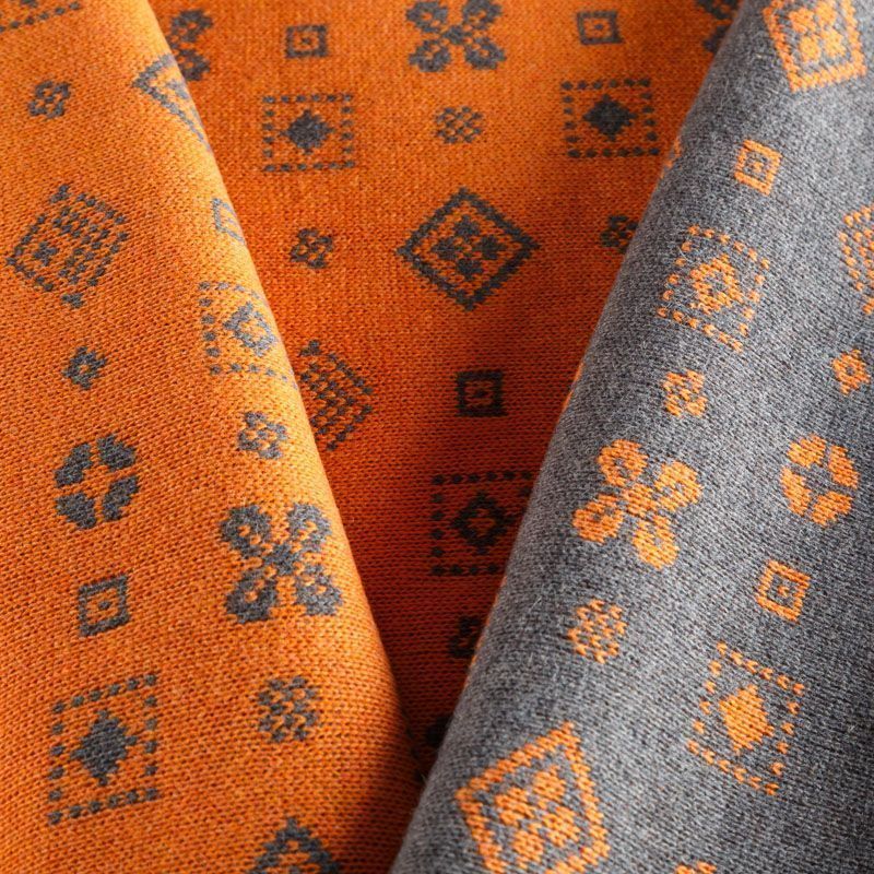 Трикотаж 2-х сторонний вязаный 056-05819 серо-оранжевый