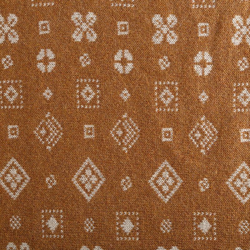 Итальянский теплый мягкий вязаный шерстяной трикотаж, два слоя которого соединены между собой жаккардовым геометрическим узором. Полотно очень пластичное, приятное на ощупь, не колется. При соответствующей обработке швов одежду из этого трикотажа можно носить на обе стороны. Подойдет для пошива теплых уютных свитеров, кардиганов, пальто, костюмов, теплого платья, свитшота, джемпера.