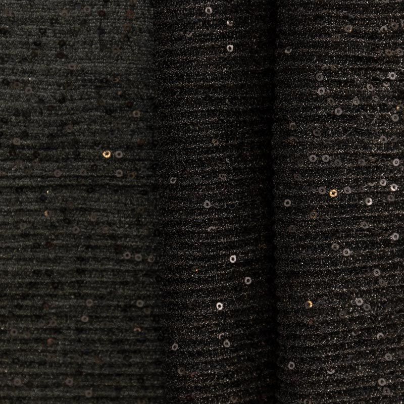 Трикотаж гофре 1120-341-056-0026 черный с пайетками