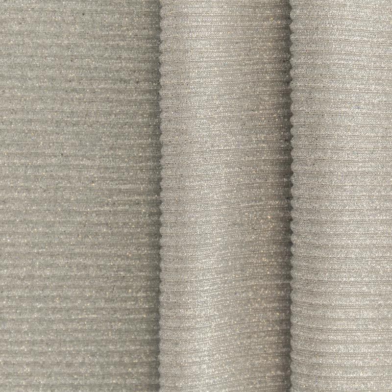 Легкая, слегка прозрачная ткань, с высокой степенью эластичности, поверхность рельефная за счет эффекта гофре и мерцающая за счет напыленного  люрекса. Идеальна для облегающих изделий с использованием подклада, платья, топа, юбки, брюк, кардигана. Полоски гофре расположены поперек кромки, набирается объемом.